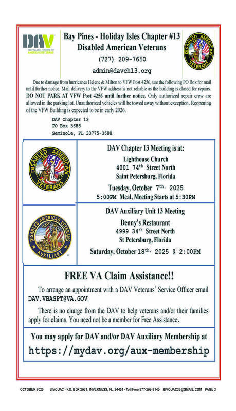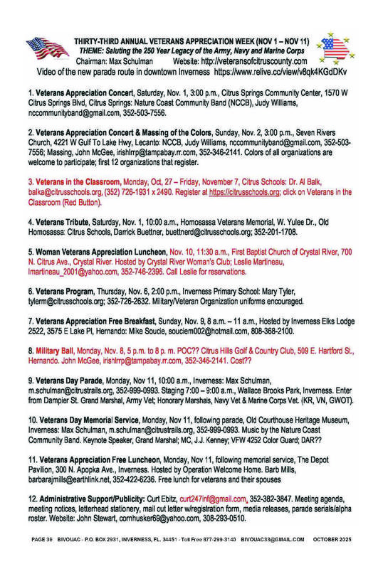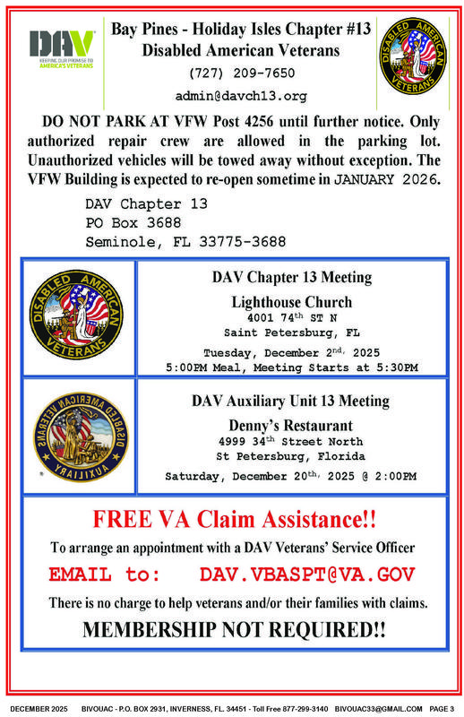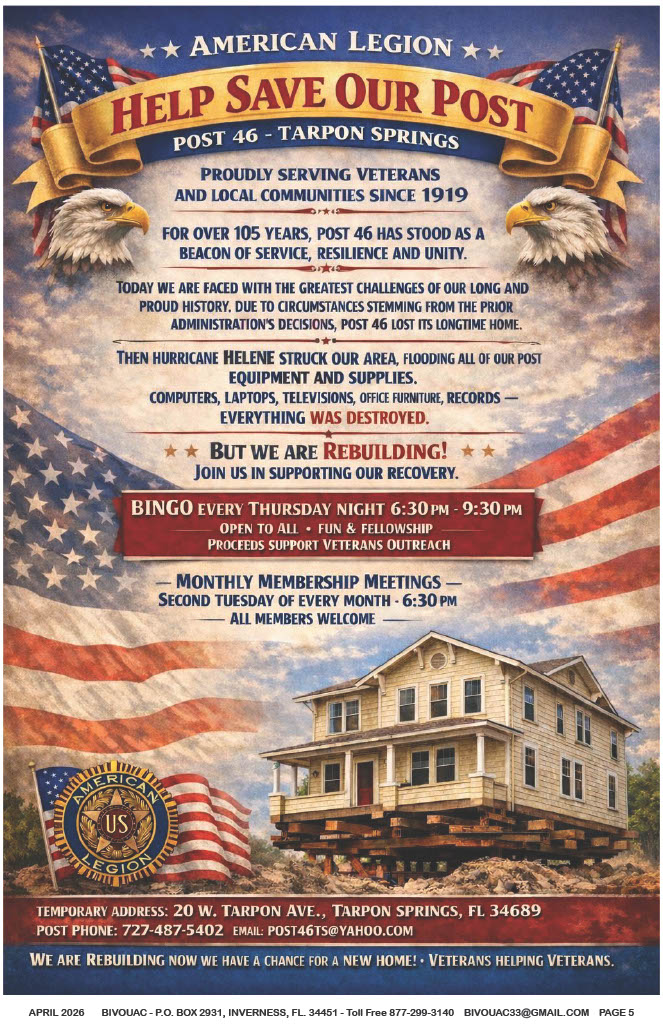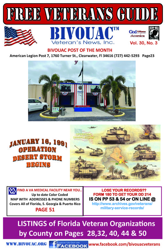 FAIR USE NOTICE: This publication contains copyrighted material the use of which has not always been specifically authorized by the copyright owner. The Bivouac Veterans News, Inc. is making such material available in our efforts to advance